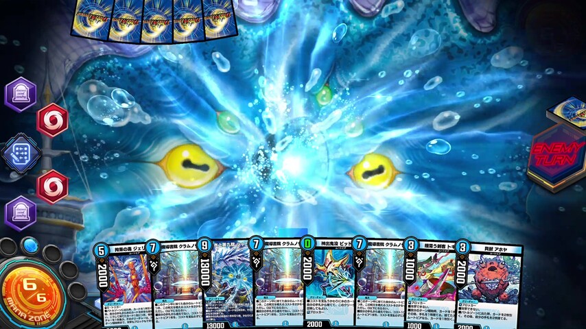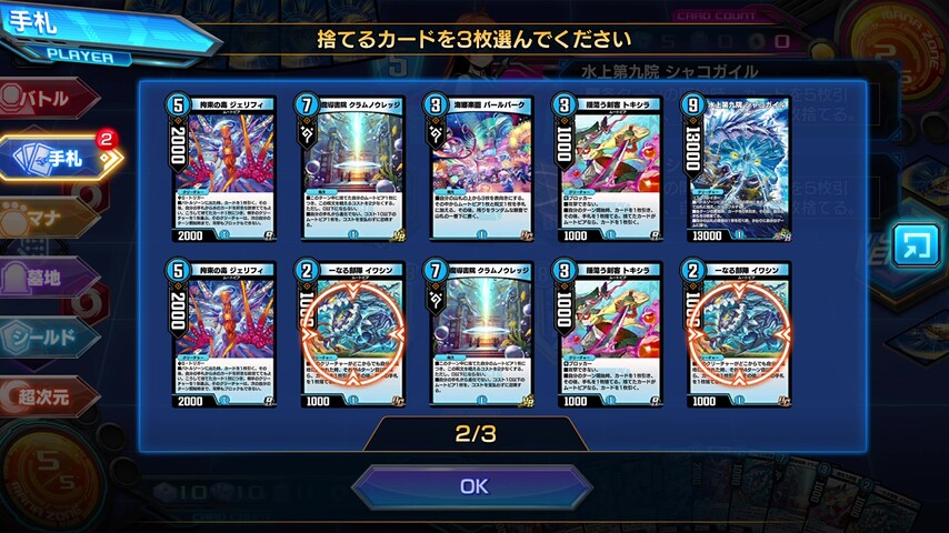 2体の《水上第九院 シャコガイル》がいれば、自分のターンが返ってくるまでに20枚のカードをドローできる事になるので特殊勝利できる確率も高まります。