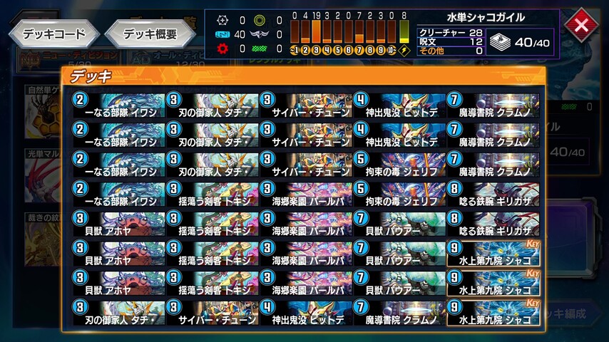 デュエマ界の特殊勝利の代表格の《水上第九院 シャコガイル》を主軸に据えたデッキ。