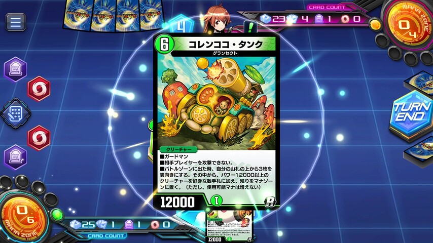 また、《オ・ジンレオ・タンク》や《コレンココ・タンク》のような相手を攻撃できないクリーチャーばかり並べていると気づけば攻撃できるクリーチャーがほとんどいなかったりします。