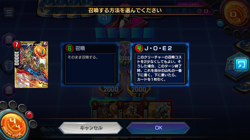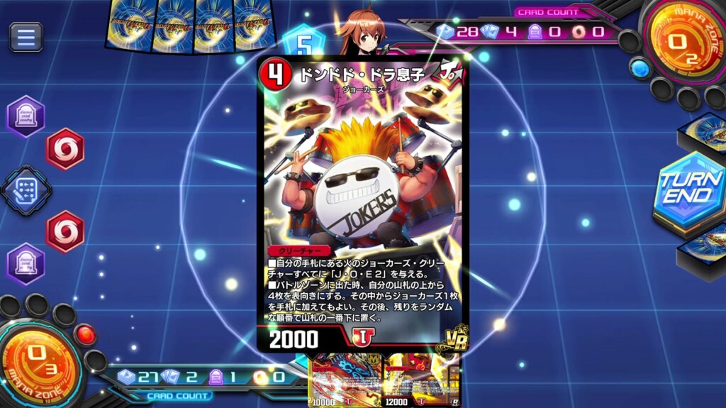 《ドンドド・ドラ息子》の能力で自分の手札の火ジョーカーズは「J・O・E」を得ます。