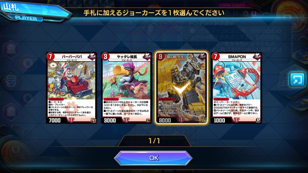 また、《ドンドド・ドラ息子》は登場時能力で山札の上4枚からジョーカーズを1枚手札に加えられます。
