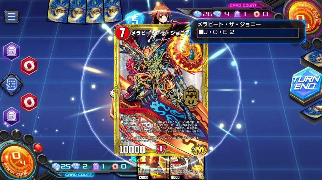 ・《メラビート・ザ・ジョニー》でジョーカーズ展開&相手盤面一掃しフィニッシュ。