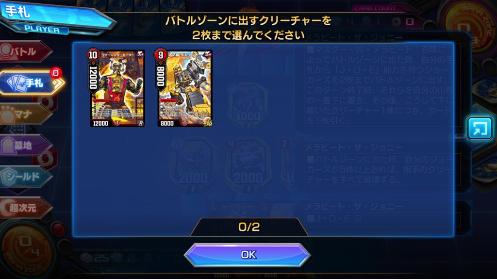 これで《メラビート・ザ・ジョニー》やその能力でタダ出しする火ジョーカーズをサーチしましょう。
