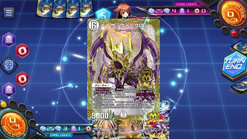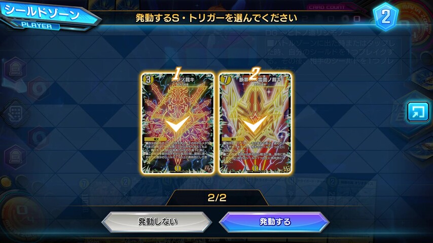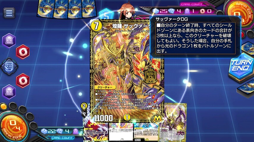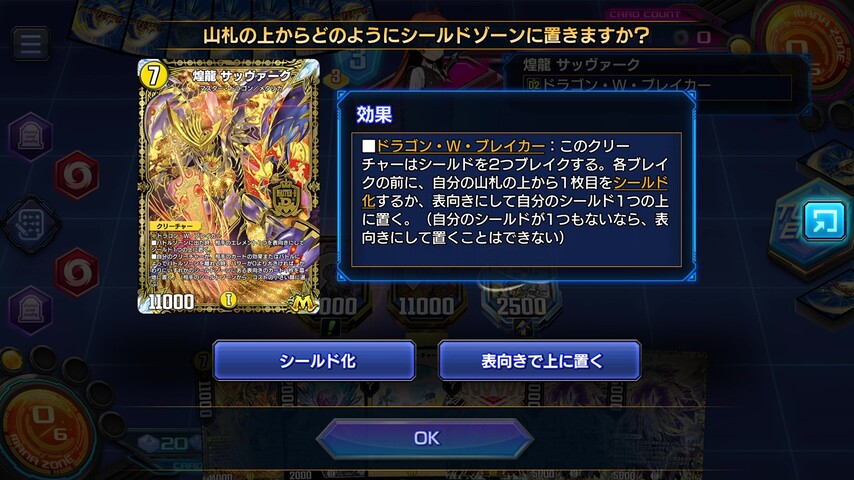 互いのシールドゾーンに表向きのカードが3枚以上あれば《サッヴァーク DG》を破壊して切り札の《煌龍 サッヴァーク》を呼び出せます。
