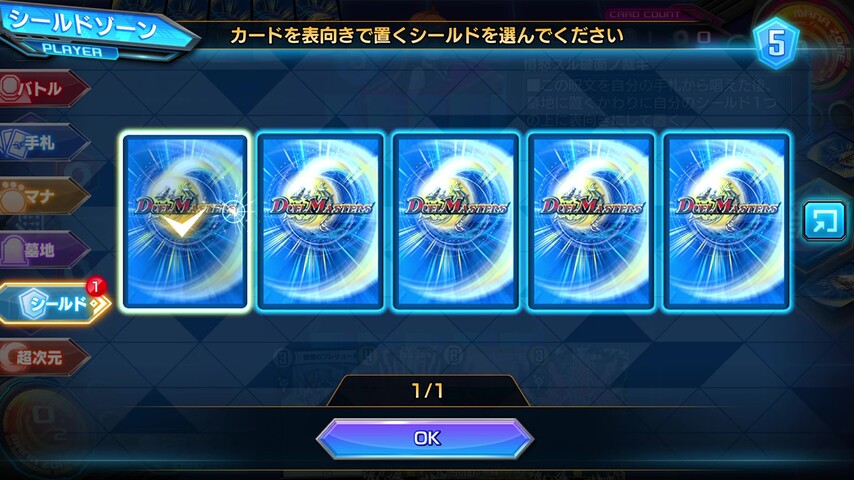 相手に攻められてシールドが無ければ、新しいシールドを追加し、シールドの枚数に余裕があるのならば表向きのシールドを増やしていきたいところ。