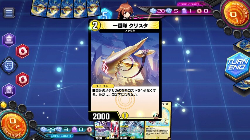 メタリカの召喚コストを軽減する《一番隊 クリスタ》をはじめとする軽量メタリカをバトルゾーンに出していきましょう。