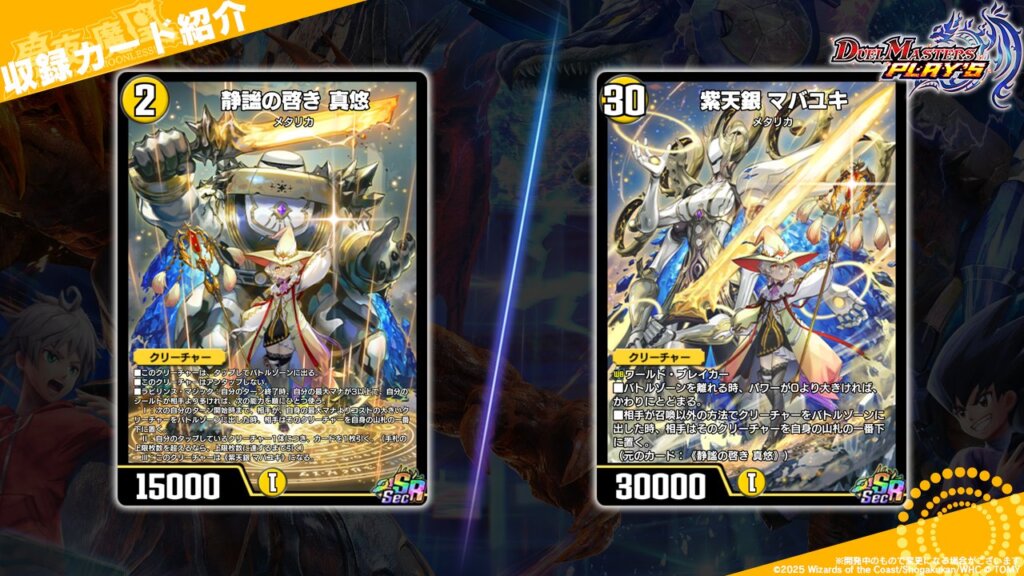 《紫天銀 マバユキ》はパワー30000のワールド・ブレイカーというデュエプレ版《超神星アポロヌス・ドラゲリオン》を連想させる基礎スペックを有しています。