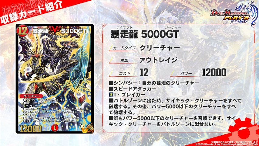 また、超天篇で登場する超GRも小型クリーチャーを「召喚」するギミックであり、大半のGRクリーチャーに《暴走龍 5000GT》の破壊&ロックが効きますね。