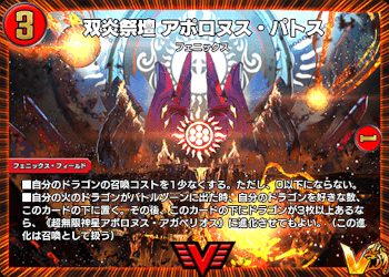 《双炎祭壇 アポロヌス・パトス》の下にドラゴンが3体以上あれば《超無限神星アポロヌス・アガペリオス》へと進化!