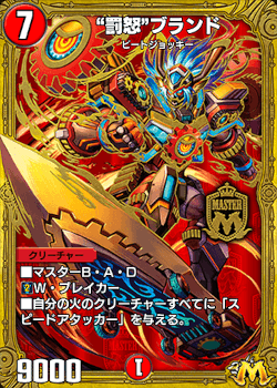 《”罰怒”ブランド》は自軍の火クリーチャーをスピードアタッカーにする強力な能力を有しています。
