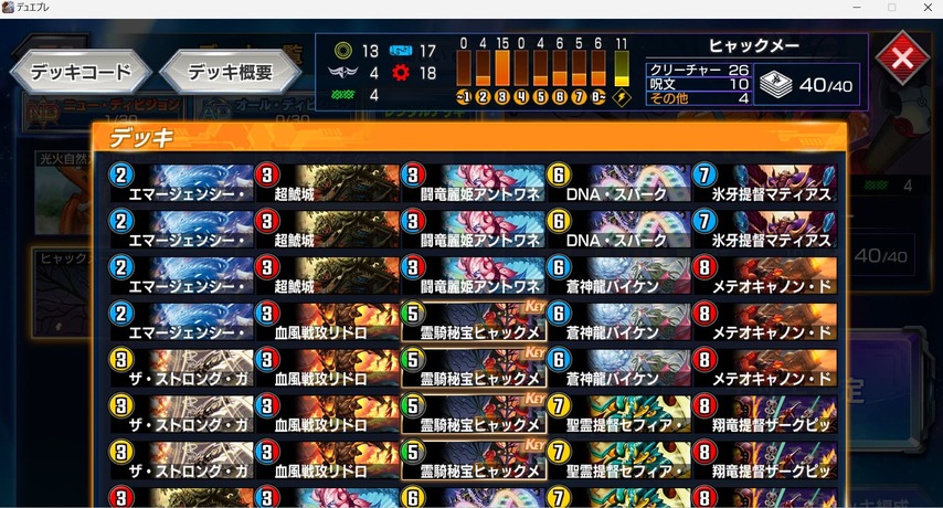 盤面に出ているドラゴンから察するに2年ほど前のランクマッチで使われてそうなデッキとなります。