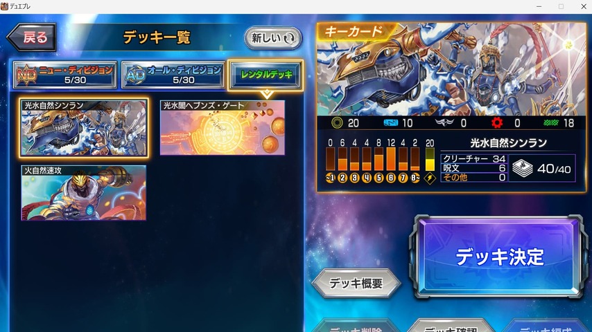 3周年を機にデュエプレの世界に入ってきたカード資産の乏しいビギナーでもある程度勝ち抜けるようにレンタルデッキが用意されています。