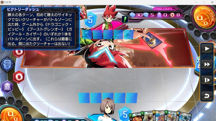 1戦目から15戦目まではモブNPCは型落ちのデッキを使用するので、シールドを増やして相手が殴ってきたらS・トリガーで反撃という戦い方で割と勝ち抜くことができます。