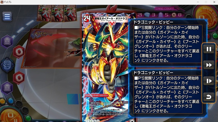 ただ、今回の挑戦では《激竜王ガイアール・オウドラゴン》のリンクを完成されてしまいました。