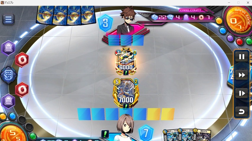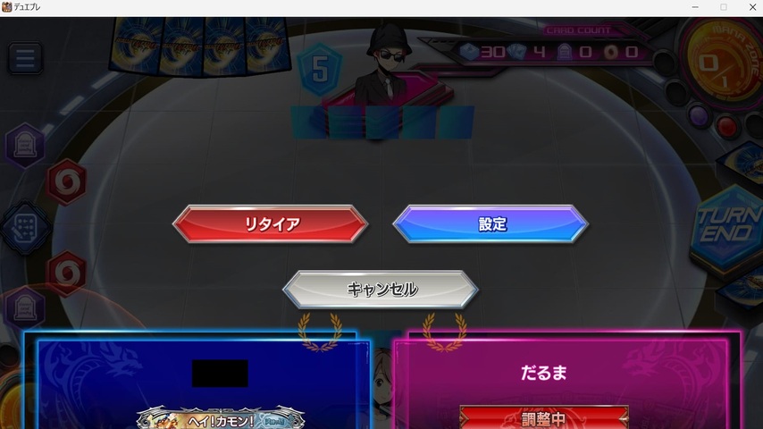 デュエル画面左上のメニューボタンを押すと以上のような表示となります。