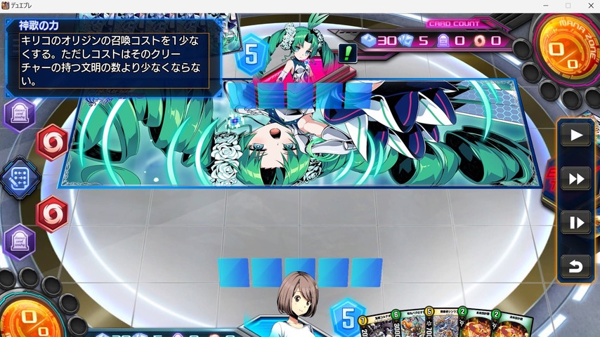 レジェンドスキルでオリジン・クリーチャーのコストを1下げ、ドローカードで手札を補充し、ドンドンとオリジンをバトルゾーンに展開していきます。