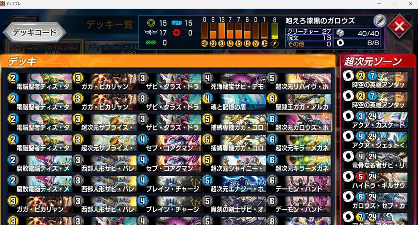 「咆えろ漆黒のガロウズ」の初期状態では超次元ゾーンにカードが16枚入っていますので、超次元ゾーンから8枚カードを抜かないと使用できません。