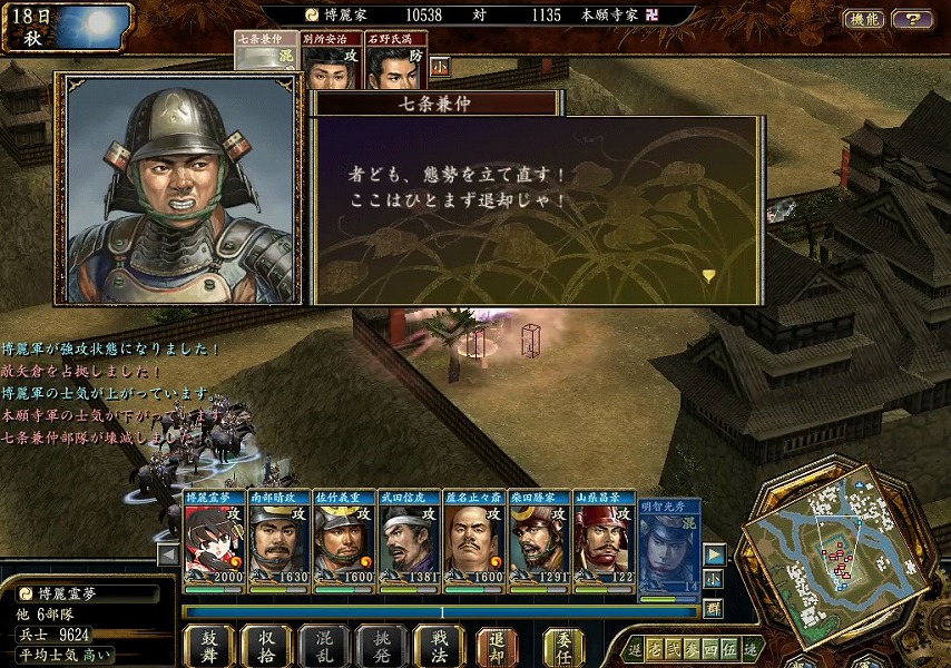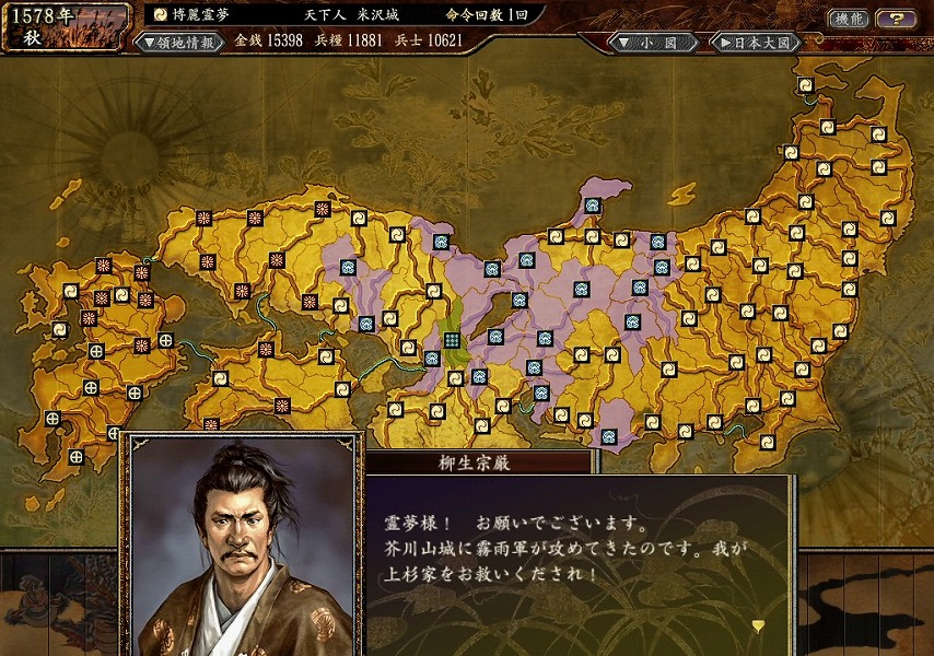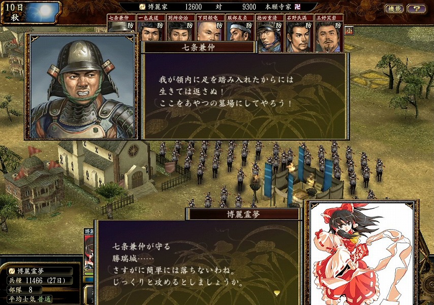 前回は、鈴木家を滅ぼし、最後の敵対勢力である本願寺家に侵略を始めた博麗家。