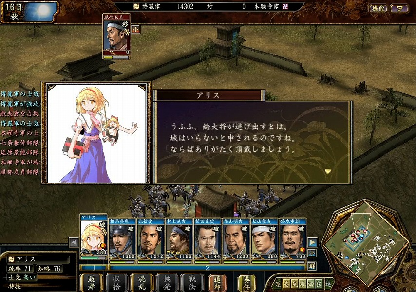 さて、魔理沙の事は一旦置いておき、本願寺家の領地を攻略していきます。