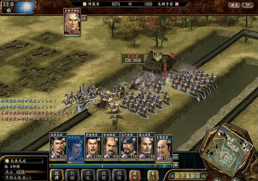 兵力の多い顕如が籠っているので耐久を減らすのも一苦労です。
