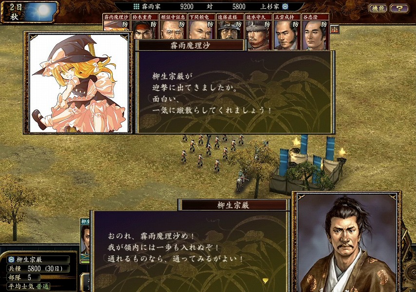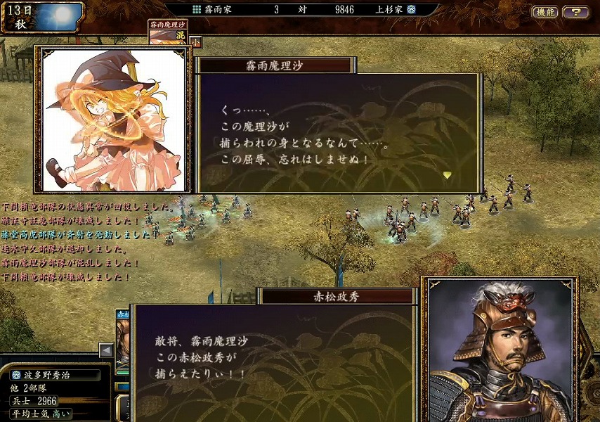 魔理沙を放置プレイしていると兵力を蓄えた霧雨家の軍勢が上杉家の芥川山城に進軍しました。