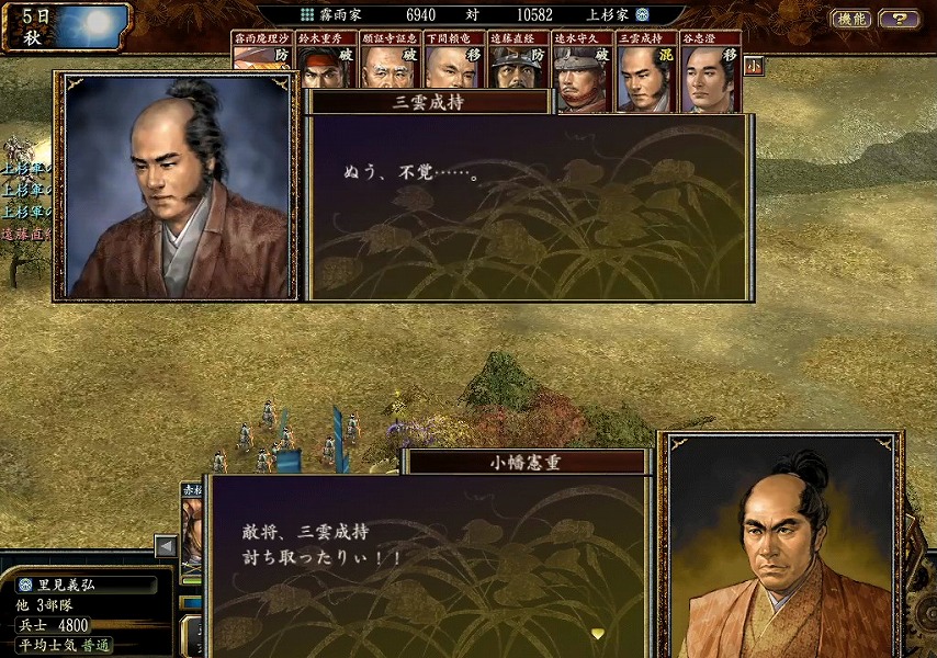 上杉勢は霧雨勢の武将を颯爽と討ち取り。