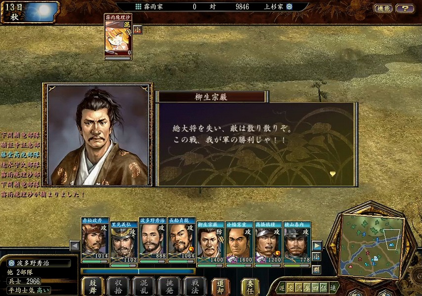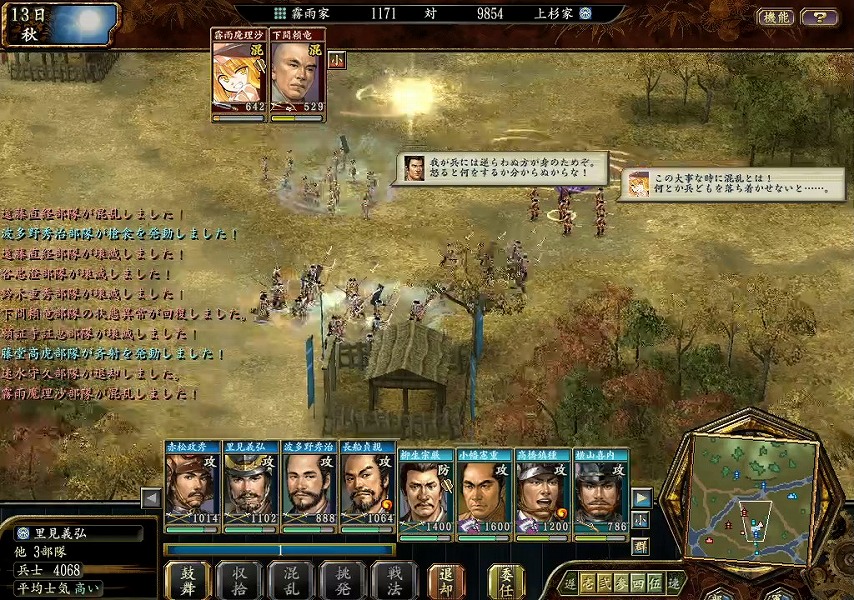 砦を占拠したとたん、上杉家の軍勢含めて動きが良くなり、霧雨勢の部隊を次々と壊滅させていきました。