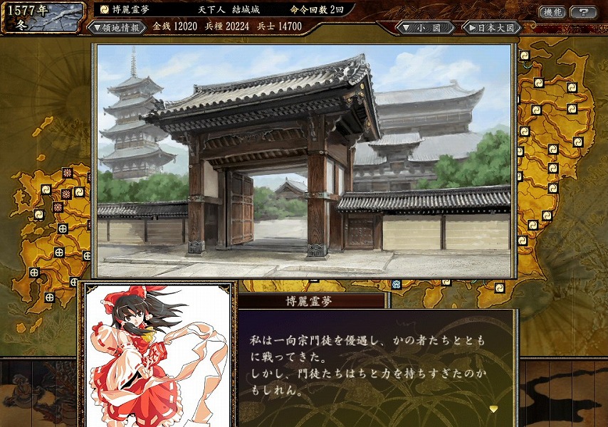 霊夢さんは各大名と戦争するに当たって一向宗門徒を優遇し、彼らを味方につけてきたとのこと。