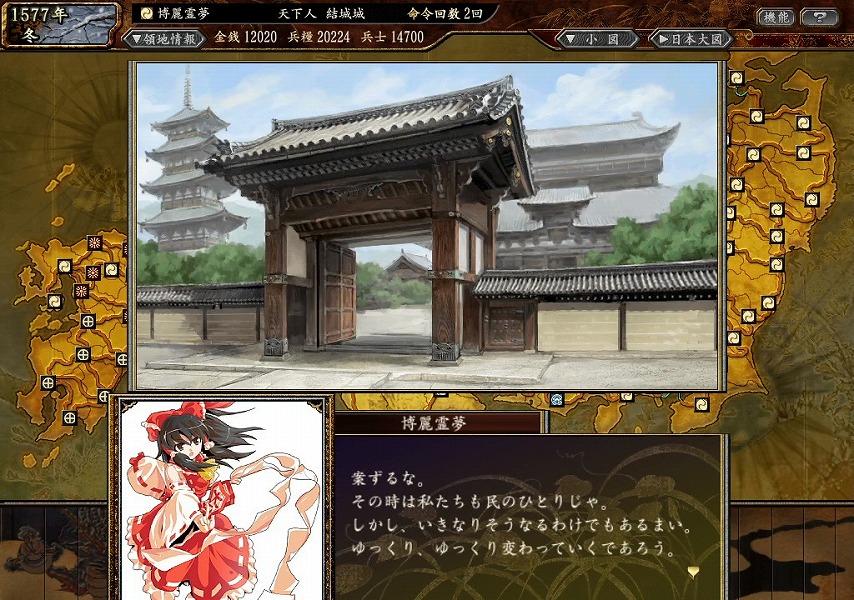 ついに、敵対する大名を全て従属あるいは滅亡させて天下統一をはたした博麗霊夢。
