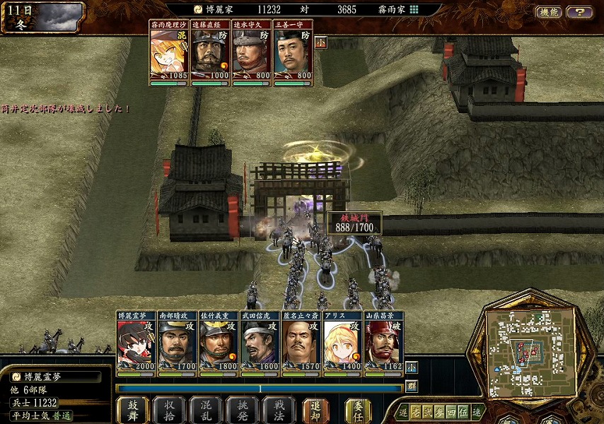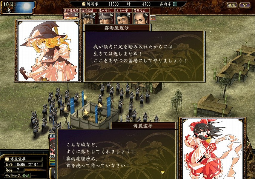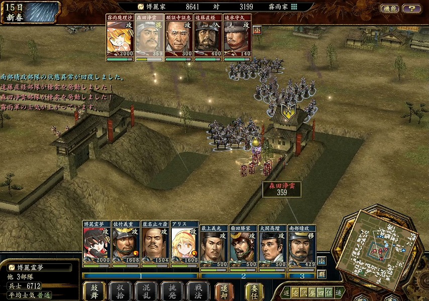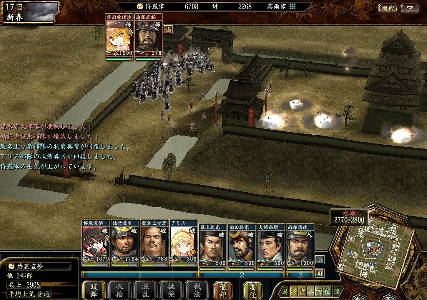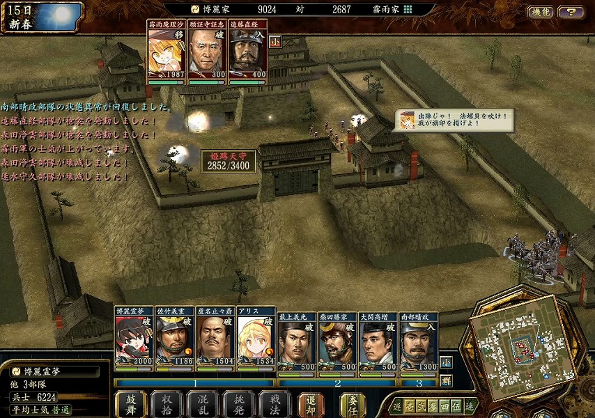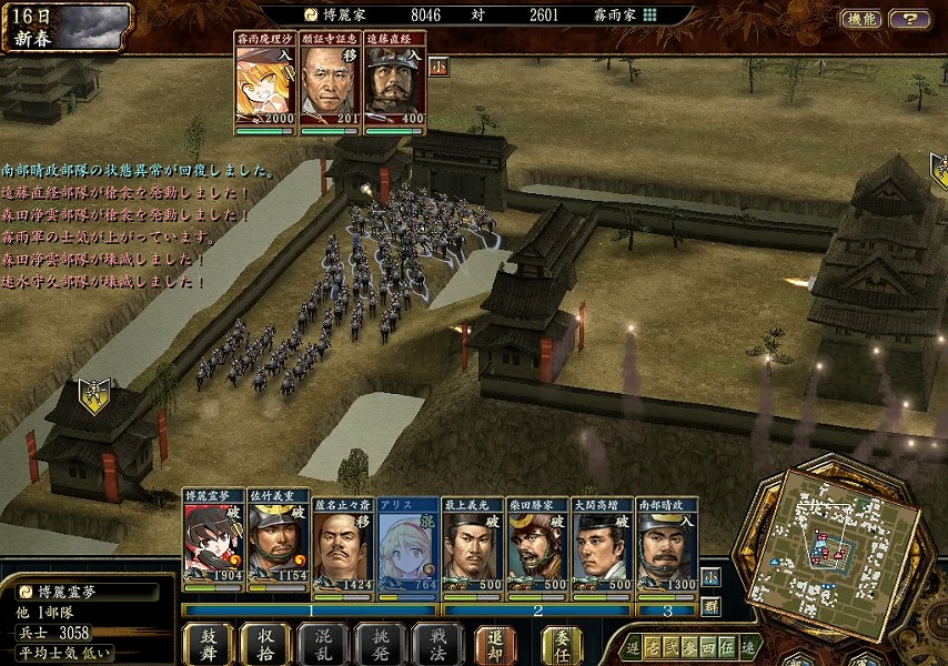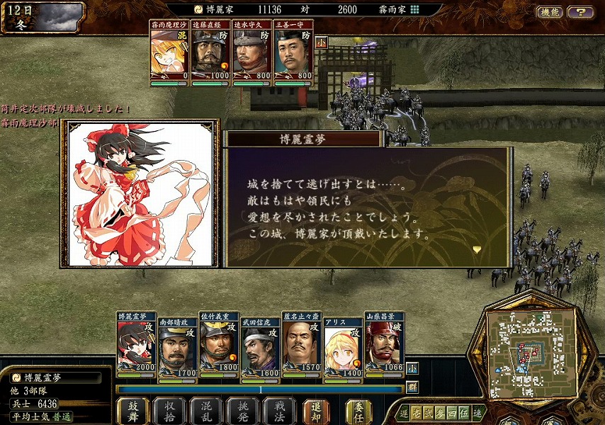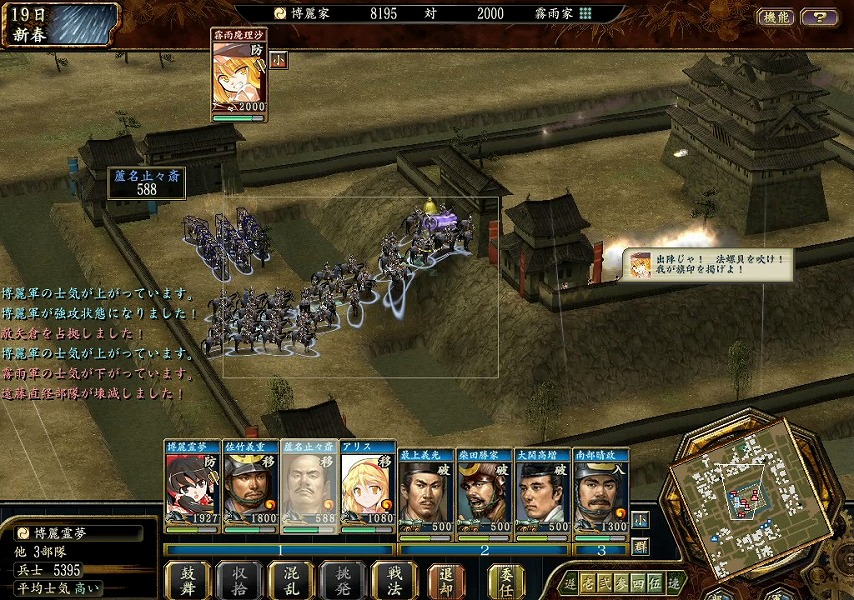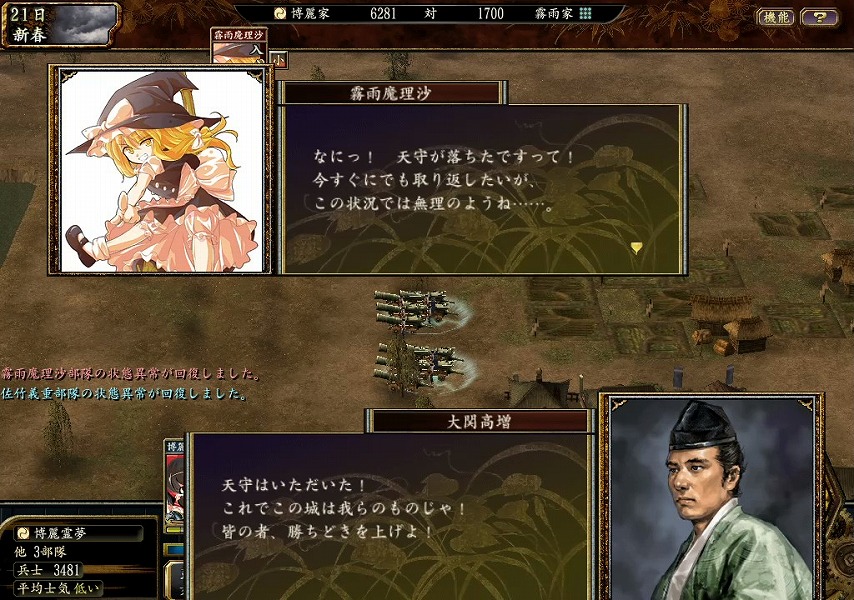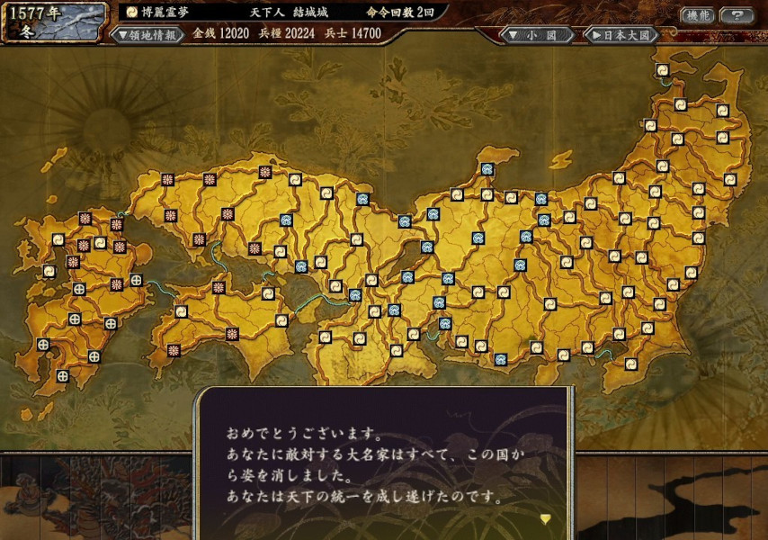 霧雨家を倒せば、残りは博麗家に従属している大名のみとなるので無事天下統一となります。