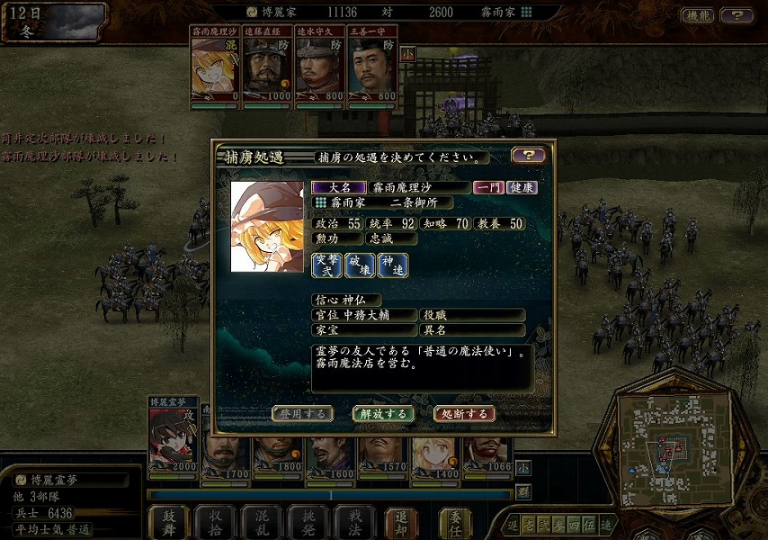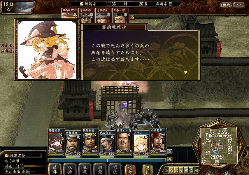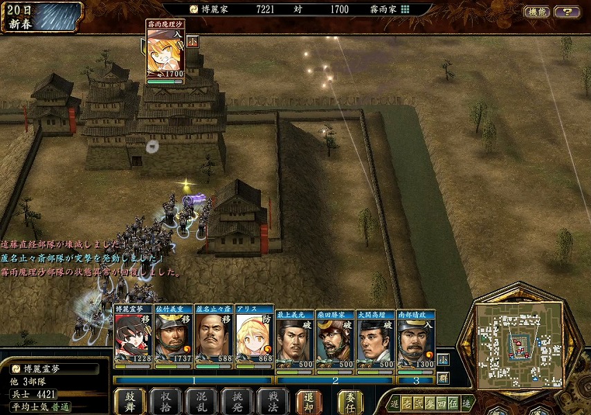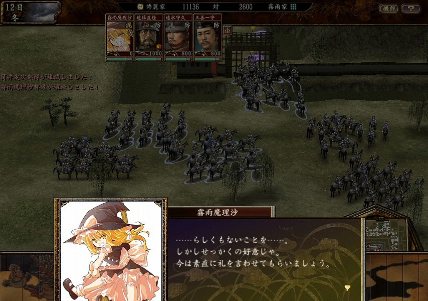 霧雨家は魔理沙以外の武将が全滅し、残りは当主の魔理沙一人のみ。